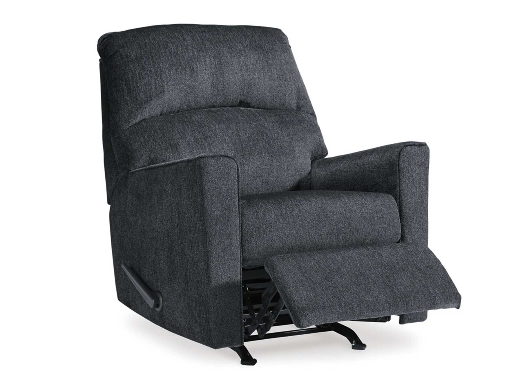 FeaturesGentle rocking motionAttached cushionsHigh-resiliency foam cushions wrapped in thick poly fiberCorner-blocked frame with metal reinforced seatOne-pull reclining motionPolyester upholstery