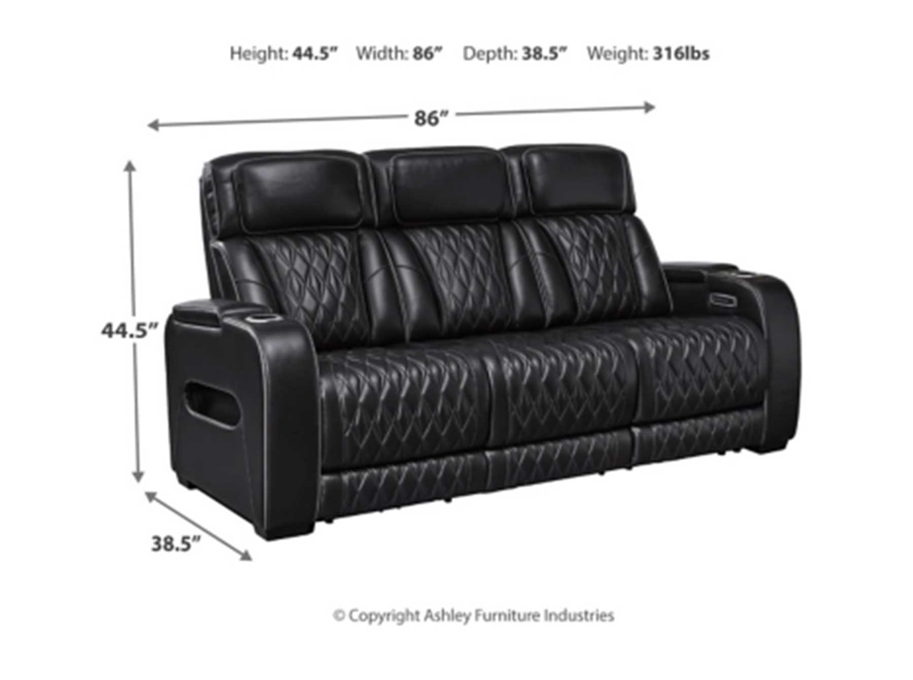 Ready to take your reclining experience to the next level? Then sit up and take notice. With the Boyington power reclining sofa, ultimate relaxation is at your fingertips. Experience the pure bliss of an air massage system and heated seats at the touch of a button. The center seat is crafted with a drop-down table with wireless charging and dual cup holders. Plus the luxurious diamond-stitched upholstery is easy on the eyes, adding elegance to any space.