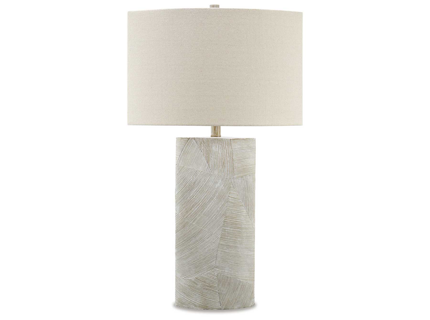 The rustic natural beauty of this table lamp makes it perfect for illuminating any room. Its brown and ivory resin base is complemented with a straight-side oval hardback shade. Low profile yet elegant, this lamp makes a gorgeous accent for contemporary spaces.