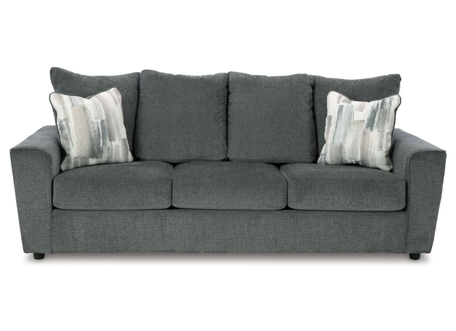What’s new in neutrals? Shades of gray, of course. Embrace the sophisticated design trend with this gorgeous loveseat, which offers a clean-lined, contemporary style at a comfortably cool price. Sure to lift your spirits, the plush chenille fabric is fabulously neutral. Contemporary flared arms give it a distinctive flair. This loveseat also arrives with two cool brushstroke accent pillows to elevate the taste and comfort level.
