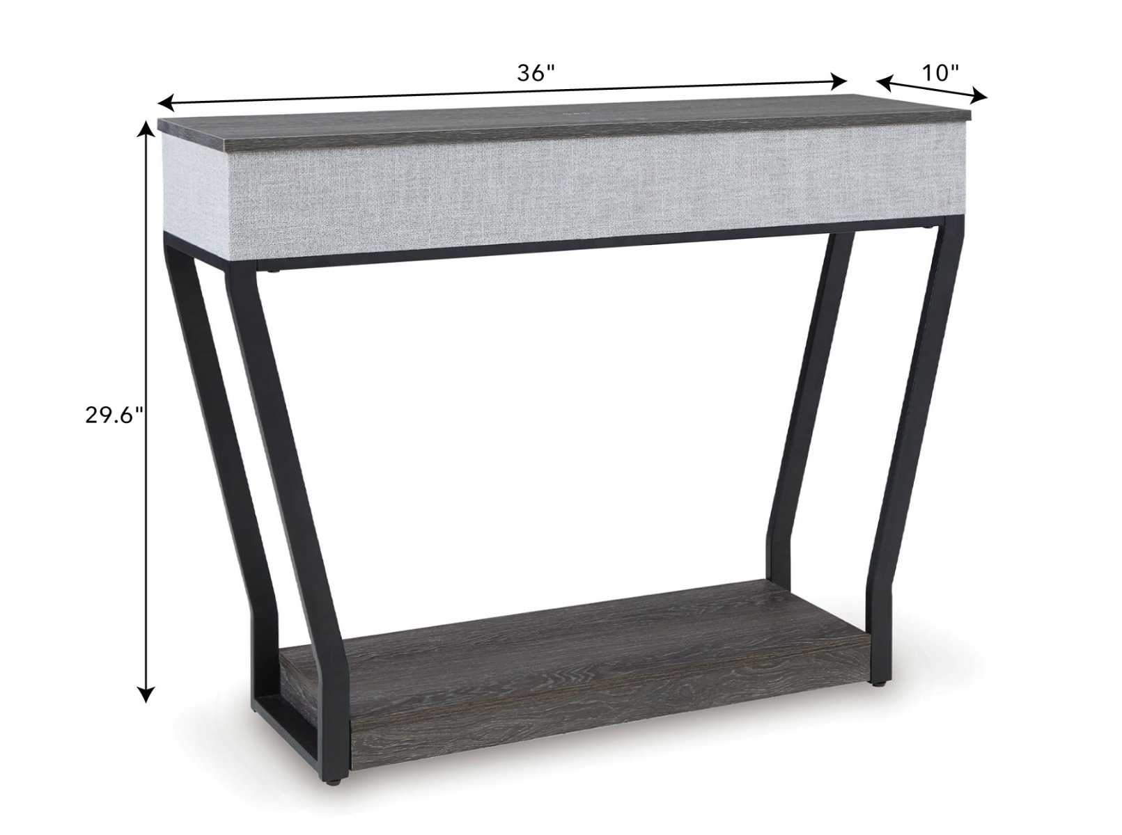With its decidedly contemporary form, this console sofa table wows with subtly integrated functional features. Wirelessly connect your audio to its built-in speakers for ambiance as you host guests or relax solo. Need to charge up as you lounge? Rest this console against the back of your sofa to keep its wireless and USB charging options in reach. The table's spacious top and lower shelf leave plenty of room to customize the look with your favourite decorative accents.