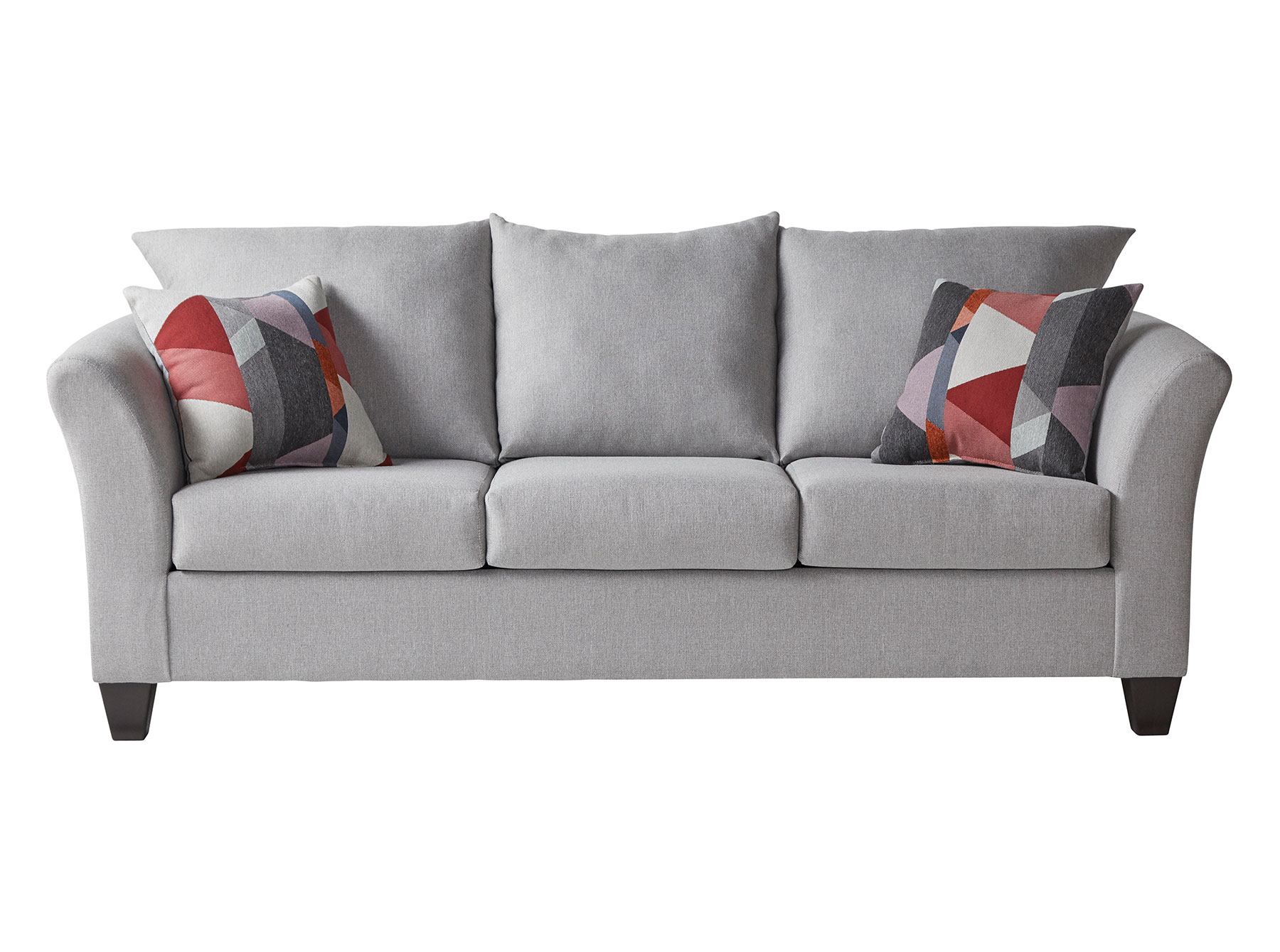 This sofa features a sleek, modern design with soft curves and comfortable, supportive seating. Built for everyday living, it includes reversible seat cushions and a durable frame for long-lasting use. Accent pillows add a stylish touch while enhancing comfort.